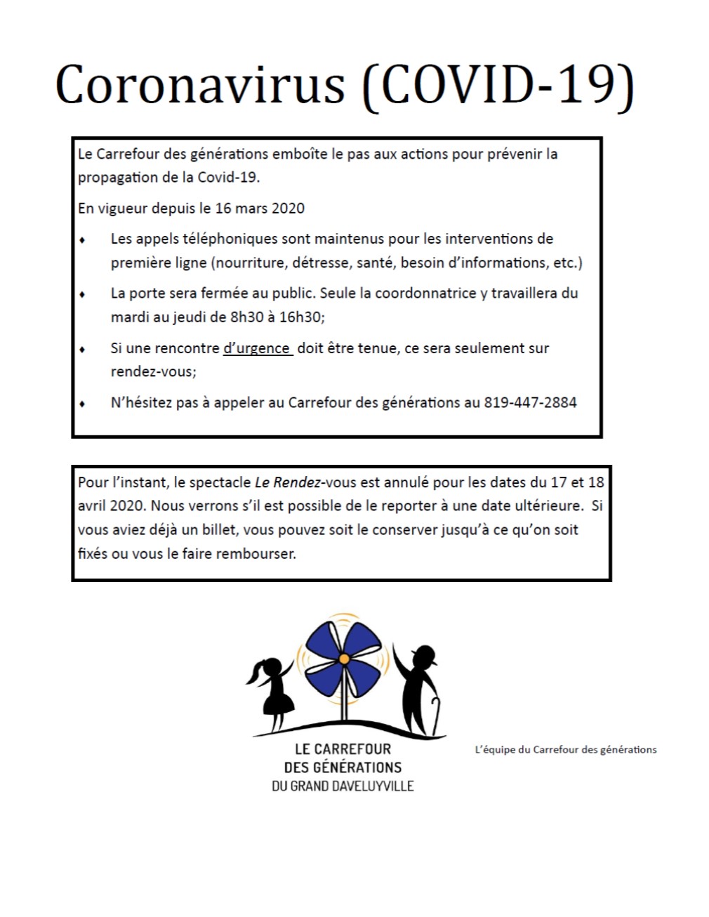 Carrefour des générations - Covid-19