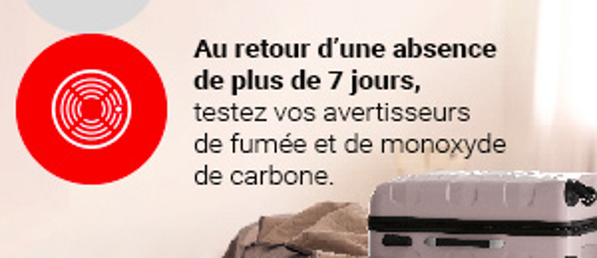 Pour le mois de février 2020, le MSP et ses partenaires vous proposent le thème « Au retour d’une absence de plus de 7 jours » afin de vous rappeler de tester vos avertisseurs de fumée et de monoxyde de carbone dès votre retour de vacances.